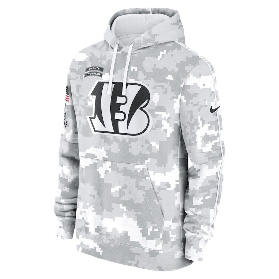Cincinnati Bengals Nike 2024 Salute to Service Club Fleece Pullover Hoodie – Arctic Camo