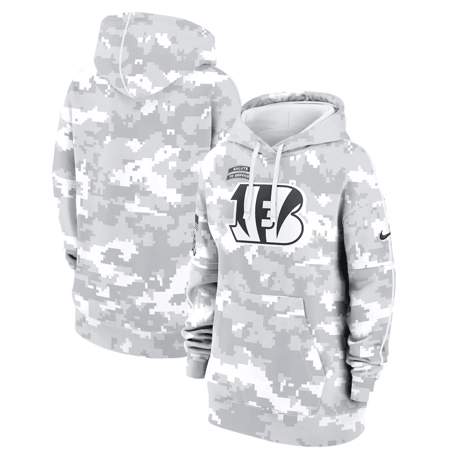 Cincinnati Bengals Nike Women’s 2024 Salute To Service Club Fleece Oversized Pullover Hoodie – Arctic Camo