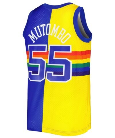 Dikembe Mutombo Denver Nuggets Mitchell & Ness Hardwood Classics 1991/92 Split Swingman Jersey – Royal/Gold