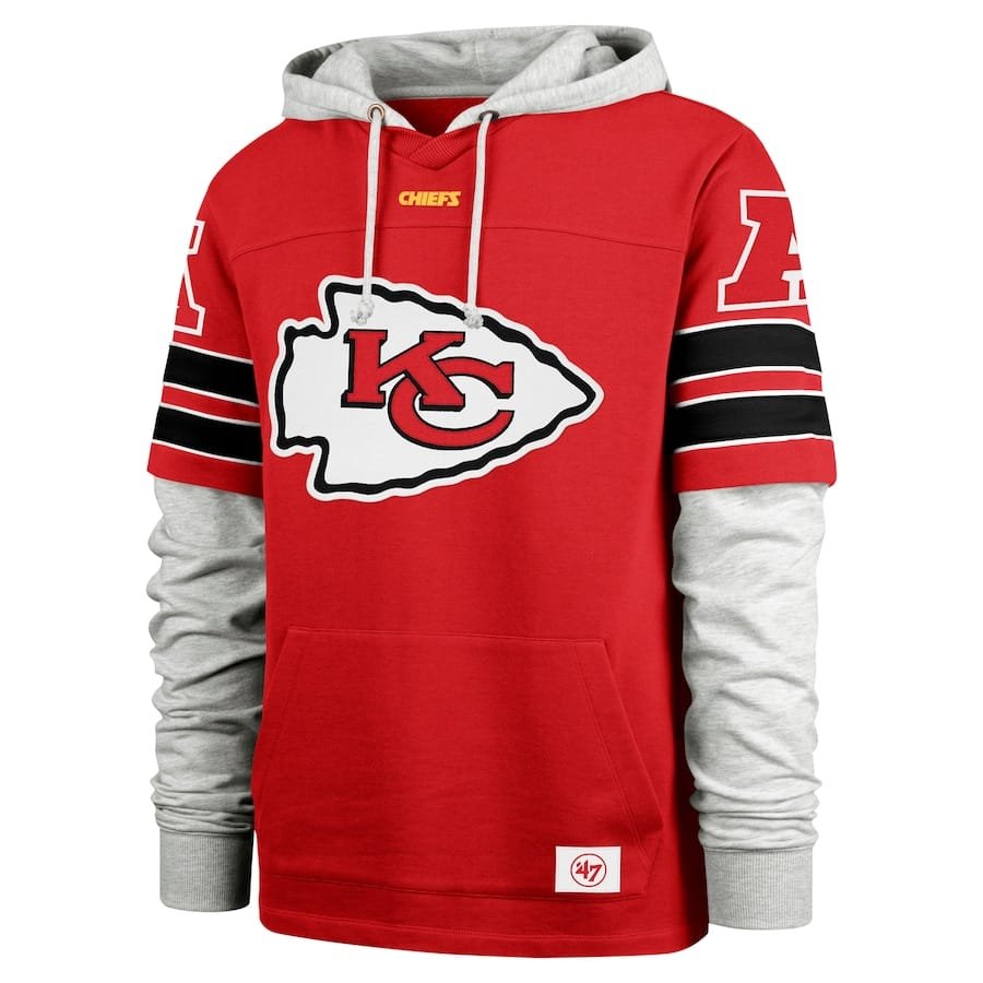 Men’s Kansas City Chiefs ’47 Red Double Header Blitz Cornerback Pullover Hoodie