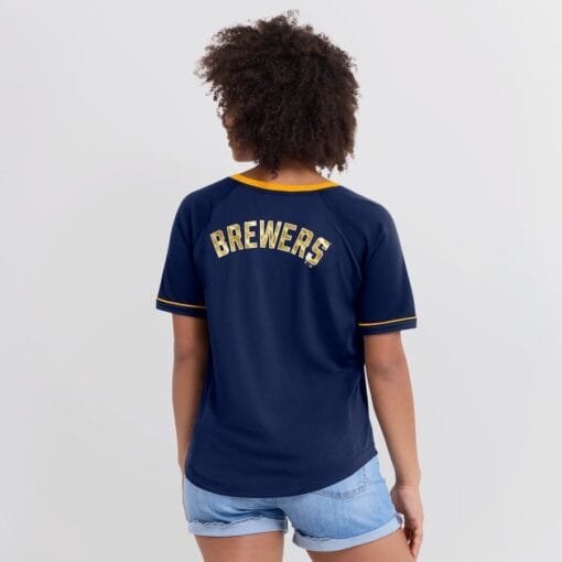 Milwaukee Brewers Fanatics Women's League Diva Star Raglan V-Neck T-Shirt – Navy