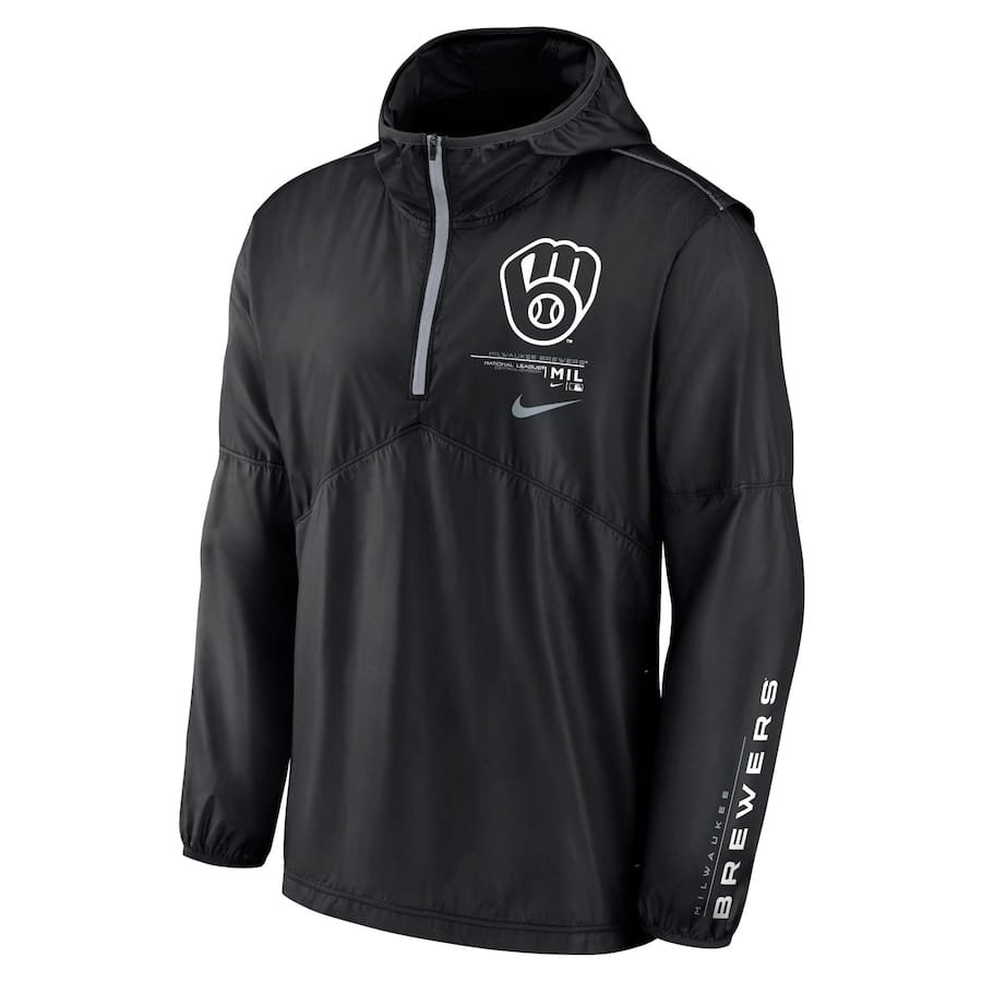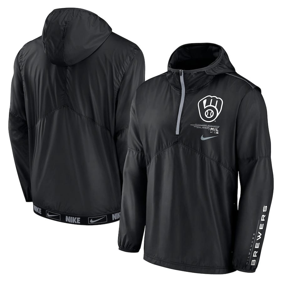 Milwaukee Brewers Nike Authentic Night Game Performance Half-Zip Windbreaker – Black
