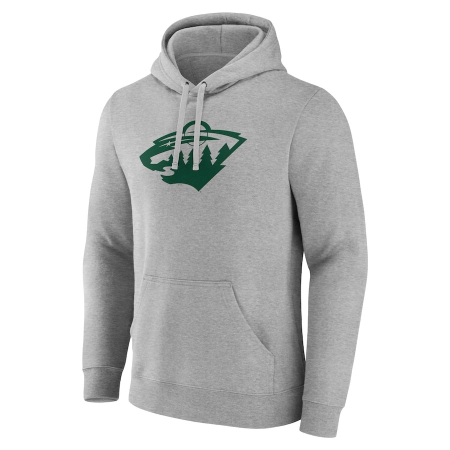 Minnesota Wild Primary Team Logo Fleece Fitted Pullover Hoodie – Heather Gray